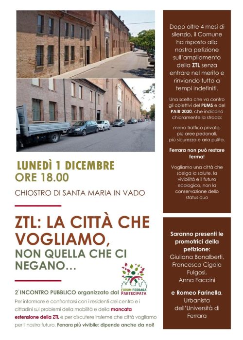 INCONTRO PUBBLICO – ZTL: LA CITTA’ CHE VOGLIAMO, NON QUELLA CHE CI NEGANO…