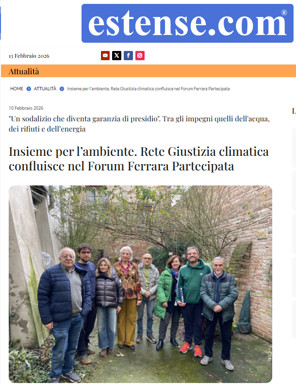 Rete Giustizia Climatica confluisce nel Forum Ferrara Partecipata. Questa scelta – fanno sapere i referenti – non discende tanto dall’idea di pensare all’esaurimento di un’esperienza che molto ha prodotto rispetto al fatto di far crescere le istanze e la sensibilità ambientale nella città, quanto piuttosto all’evoluzione e al rilancio della stessa, in una situazione mutata rispetto a quando essa era nata”.