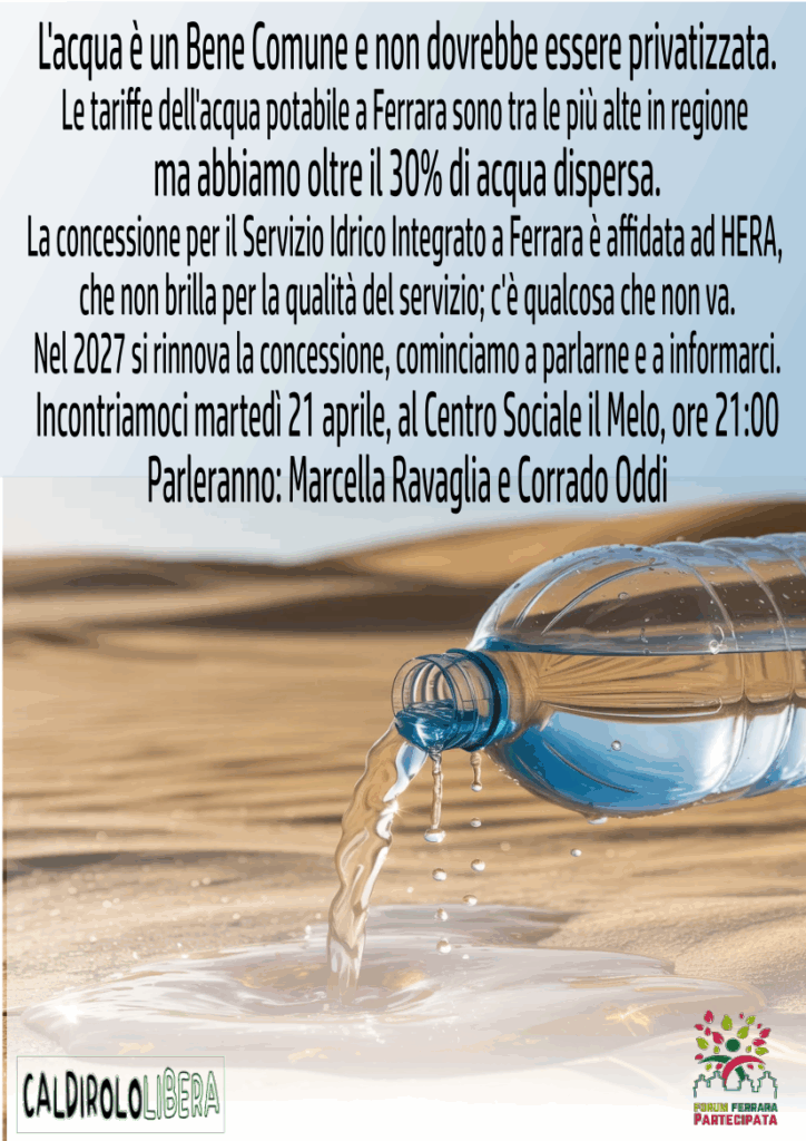 “Alla fine del 2027 scadranno le concessioni del servizio idrico in tutta la provincia – ha infatti affermato Oddi -. Nel Comune di Ferrara e nell’Alto ferrarese la gestione è affidata a Hera, mentre nel Basso ferrarese il servizio idrico è operato da Cadf, una spa a totale capitale pubblici”. Per Oddi, l’unione tra Rete e Forum sarà anche un chiaro segnale per le realtà associative del territorio: “Vogliamo lanciare un segnale a tutto il mondo associativo affinché trovi elementi di raccordo e convergenza”.