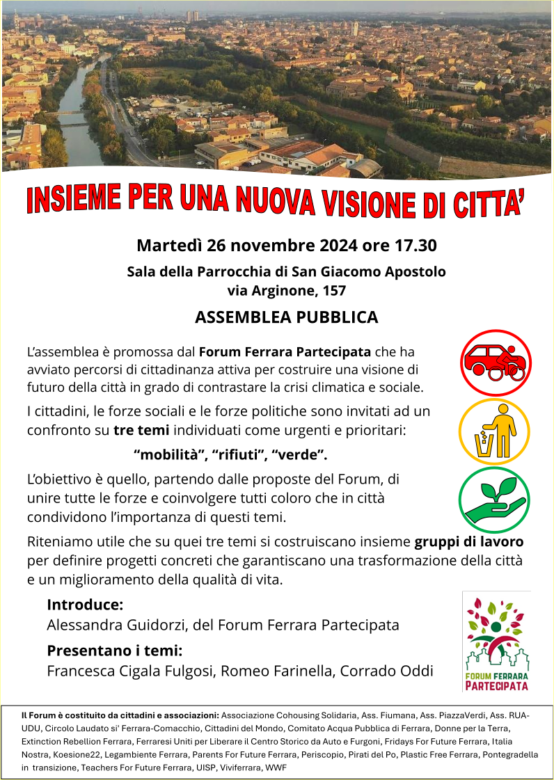Nell’intervento pubblicato da Estense.com il signor Corrado Oddi per conto del Forum Ferrara Partecipata e della Rete Giustizia Climatica propone due azioni concrete attorno alle quali aggregare le forze del centro sinistra per un prossimo programma di governo a Ferrara: